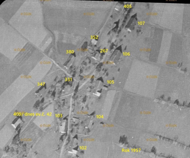 Na webu lms.cuzk.cz byly zveřejněny letecké snímky z roku 1957. Bohužel nepokrývají oblast vorwitzkého sedla, ale i tak na rozdíl od snímků z roku 1955 jsou detailnější a lépe tak doplňují snímky z roku 1955. Odkazy na letecké snímky jsou uvedeny na záložce HISTORIE OSADY - Proměny v čase nebo na lms.cuzk.cz - vybrat s snímky z roku 1957.