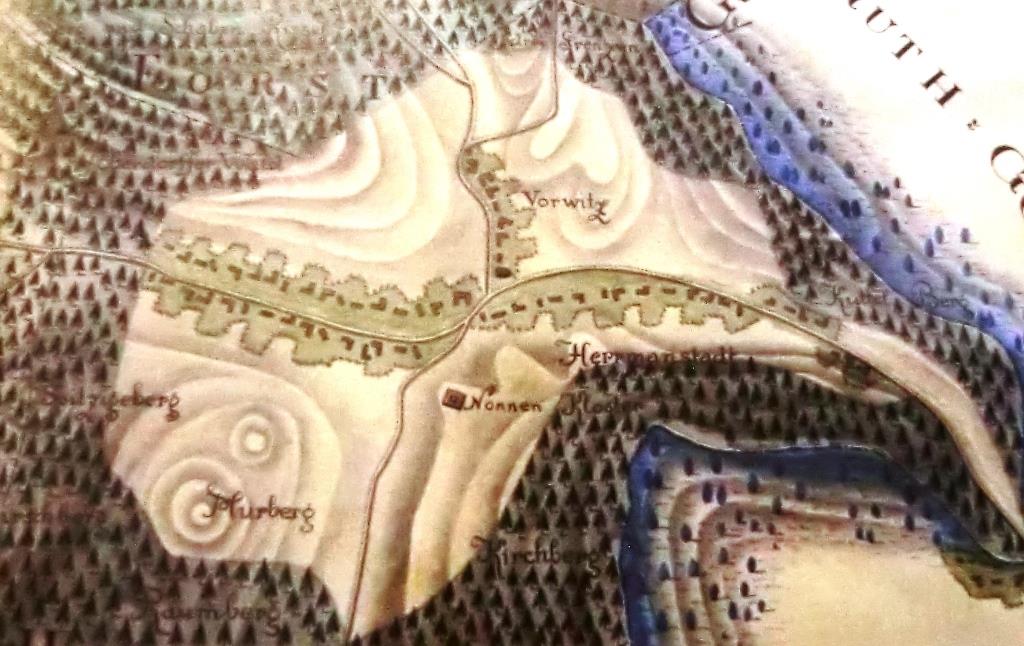 Nyní se nacházíme na křižovatce dvou cest, ta vlevo nás dovede až ke kostelu sv. Ondřeje, ta vpravo se používá jak zkratka ke hřbitovu a bývalé hospodě. U větvení cest se nachází rekonstruovaný dům s č.p. 331 (parc.č. 361). Naproti stál dříve velký dům s č. p. 349 (parc.č. dříve 362, nyní zahrada 965), stopy po domě bychom hledali marně, stojí zde plot níže položené chalupy a roste zde bujná vegetace. Po cestě dál se ve svahu nachází dům s č.p 347, (parc. 360). Ačkoli byl dům v 50. letech určen k odprodeji za účelem výzisku materiálu, byl zachráněn a je využívám k rekreačním účelům. Dále se nachází novější stavba s ev. č. 2, kde původně do poloviny 50. let stál původní dům (nejspíše. č. p.409, parc 449), ještě o pár metrů níže se po levé straně nacházel dům č.p. 274 (parc. č. 359). Na místě domu nelazenem několik kamneů a klenbu sklepa, který je z větší části zasypán. Jelikož se dále již další domy nenachází, vrátíme se zpátky ke křižovatce cest. Po levé straně, pod Grossovým domem se nacházely dva menší domy s č.p. 243 a 244 (parc.č. 367 a 368), níže se nachází pak rekreační objekt s č.p. 104 (parc.č. 445), před ním, po pravé straně se nacházel dům s č.p. 320 (parc. č. 366), naproti se nachází též roky vzorně udržovaný objekt s č.p. 103 (parc.č.365), v prudkém klesání se po levé straně, v místě, kde stojí nevzhledná garáž, se nacházel objekt s č.p. 102 (parc.č. 446), Níže se nacházel objekt č.p. 101 (parc.č. 448), dnes toto místo jen připomíná plácek, kde ještě nedávno stál přístřešek na zemědělskou techniku. Přes cestu se nachází novější stavba (č.p. 520, parc. č. 358/838) s přilehlými hospodářskými budovami. Dříve zde stál dům s č.p. 100, kde na konci války byla před dům shozena letecká bomba. Pod ním je poněkud za stromy schovaná původní chalupa č.p. 99 (parc. č. 357), přes cestu, na mírně rovinatém plácku stával dům s č.p. 98 (parc. č. dříve 450, dnes 4422), níže stojí opravený dům typu OKAL s č.p.507 (parc. č. dříve 452, dnes 772) Dnes dům slouží k rekreaci, ale před pár lety zde bydlel jeden z prvních porevolučních starostů p. Jaschek. K domu náleželo i hospodářství a Jaschkovi prodávali mléko a jiné výrobky. Každopádně i zde původně stávala jiná stavba s č.p. 97. Zajimavostí je, že tento dům spolu s č.p. 98, byly stavby, které v roce 1951 byly pronajmuty brněnské strojírně, avšak po roce 1959 na ně bylo vydáno rozhodnutí k demolici a obě stavby byly srovnány vojskem. Naproti bývalému Jaschkovému domu stojí žlutý dům, který často zdobí pozlacené kameny. Tento dům č.p. 500 (parc.č. dříve 358, dnes 779) je trvale obýván, dříve zde však stál dům s č.p. 108. Ve svahu po levé straně stával dále dům s č.p. 96 (parc. č. dříve 454, dnes 4419), pod ním stojí opuštěný dům s č.p. 95 (parc. č. 455) dříve zde stávala i stodola. Dům patří mezi objekty, které jsou památkově chráněny. Zajímavosti této stavby je skutečnost, že jako jediný stojí štítem kolmo k cestě. Hned pod tímto domem je zřejmá kamenná zídka, kde stával dům, s č.p 94. Přes cestu naproti stojí nově postavěný dům s č.p. 535 (parc.č. 857) . Na místě tohoto domu nestávala žádná stavba, avšak o pár metrů níže stával dům s č.p. 346 (parc. č. 355). Po levé straně stojí malá rekreační chatka s ev.č. 14, ani na tomto místě nestával žádný dům. Níže pak stojí dům s č.p. 93, kde jsou patrné kamenné zbytky hospodářské části domu. Poslední (nebo též prvními) domy Vorwitzu jsou pak stavby s č.p. 92 (parc.č. 353) a přes cestu stojícící č.p. 454 (parc. č. 707), který původně byl marnicí a útulkem pro chudé.